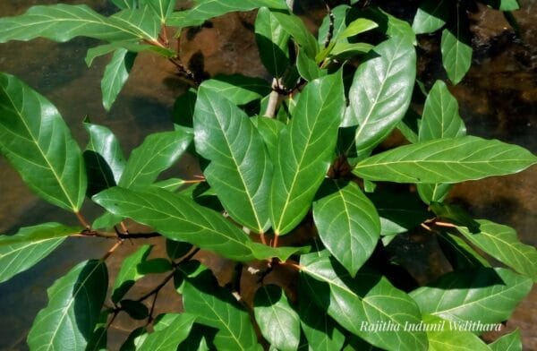 පත්ර: සරල, ඕවලාකාර පත්ර වේ. වේළුණු පත්ර මතුපිට කුඩා බිබිලි වැනි ස්වභාවයක් දැකිය හැකිය.