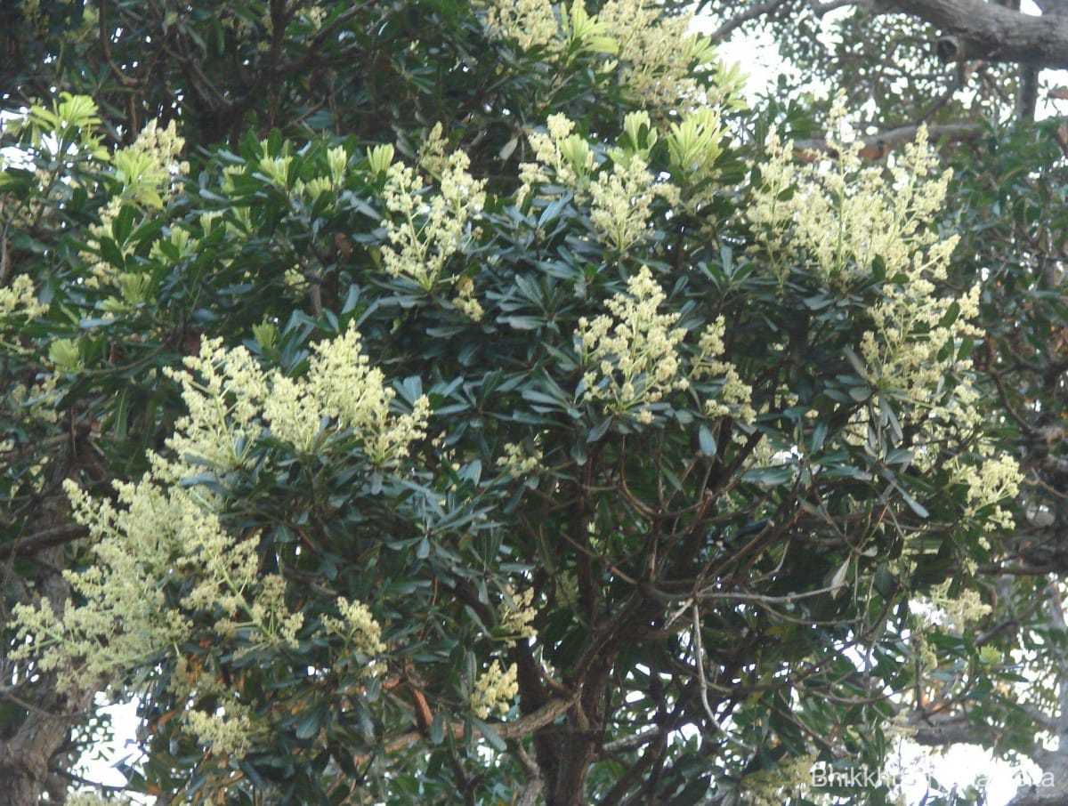මල්: සෙන්ටිමීටර 20ක් පමණ දිගු මල් පොකුරු (Panicles) හටගනී. මල් කුඩා වන අතර ක්‍රීම්-කහ පැහැතිය.