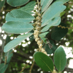 මෙම ශාකයේ පුෂ්ප මංජරිය කරල් ආකාර (spike-like) වන අතර සමහර විට අතු බෙදී පවතී. මල් ඒකලිංගික වන අතර, දම් පැහැති තැටියක් සහිත කොළ පැහැති මල් ඉතා කෙටි නටු මත හටගනී. ගෙඩි කුඩා වන අතර (විෂ්කම්භය මිලිමීටර 8 ක් පමණ), ඉදුණු විට දම්-කළු පැහැයක් ගනී. ගෝලාකාර හැඩැති මෙම ගෙඩි ස්ථීර මනි පත්ර සහ පෙති මත රැඳී පවතී. සාමාන්යයෙන් සෑම ගෙඩියකම බීජ සහිත කොටස් (pyrenes) දෙකක් අඩංගු වේ.