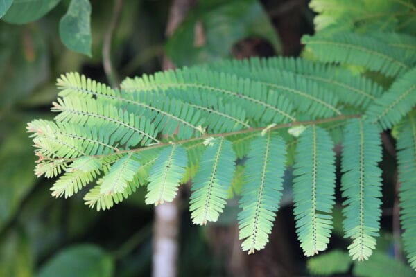 පත්ර: ලා කොළ පැහැති කුඩා පත්ර රාශියක් අතු දිගේ පිහිටා ඇති අතර, ඒවා දුරට පිහාටු සහිත පත්ර (Pinnate leaves) ලෙස පෙනේ.