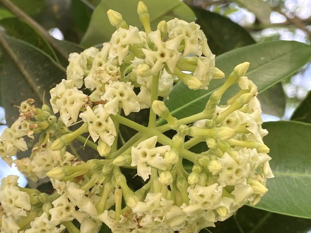 මල් කුඩා වුවද ඉතා සුවඳවත්ය. ඒවා ක්රීම් හෝ සුදු පැහැති වන අතර නලයක හැඩයක් ගනී. රාත්රී කාලයේදී මෙම මල්වල සුවඳ වඩාත් තදින් දැනේ. ගෙඩි දිගු, සිහින් කරල් යුගලක් ලෙස හටගන්නා අතර, එහි ඇති බීජ සුළඟ මගින් ව්යාප්ත වීමට පහසු වන පරිදි කෙඳි සහිතව පිහිටා ඇත.